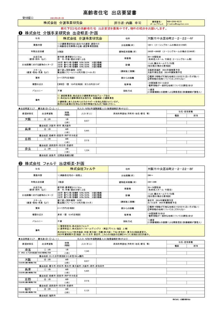 弊社グループでは高齢者住宅の出店地を募集しております。